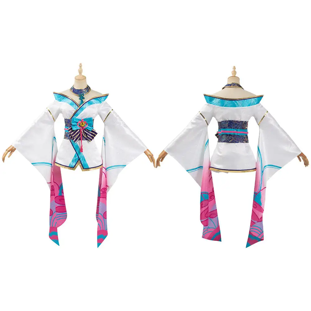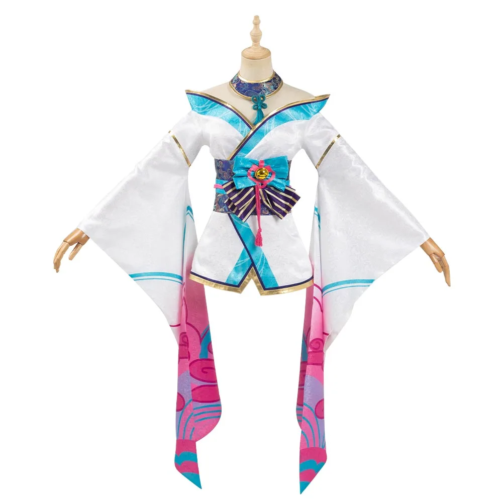 League of Legends LOL Fox Ahri The Nine-Tailed Fox Women Kimono Dress Outfit Halloween Carnival Suit Cosplay Costume