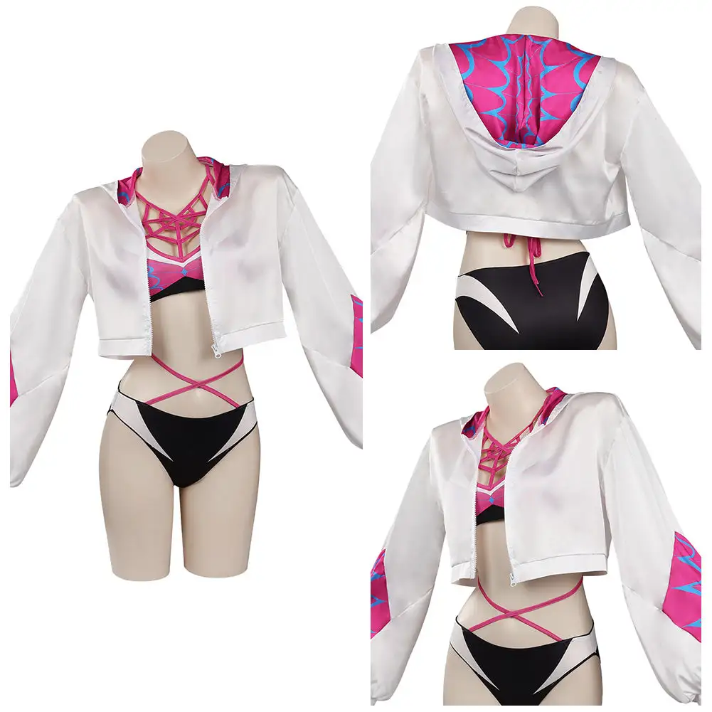 Spider-Man: Across The Spider-Verse Gwen Stacy Cosplay Costume Bikini Top Shorts Cloak Swimsuit Outfits Halloween Carnival Suit